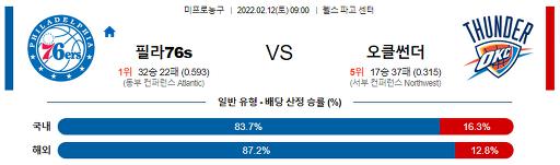 2월 12일 09:00 NBA분석 필라델피아 : 오클라호마시티