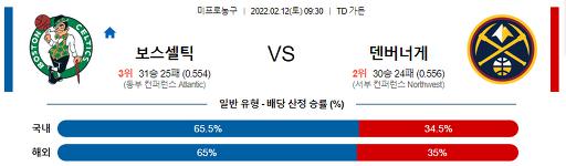2월 12일 09:30 NBA분석 보스턴 : 덴버