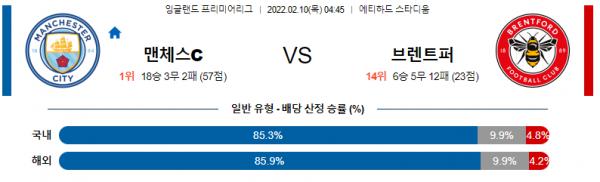 그간 브렌트포드는 상위 전력들을 상대로 엄청난 적극성, 전방 압박 능력을 발휘해왔다. 다만 대부분 결과는 썩 좋지 않았다. 가뜩이나 최근은 5연패로 인해 분위기까지 급락한 상태. 프랭크 감독의 전략적 다양성이 전혀 보장되지 않는 가운데, 맨체스터 시티의 다양한 공격 채널들을 극복해 낼 수 있을 지가 의문. 맨체스터 시티는 적절한 시점에 주력 1선의 복귀까지 가능한 상황이다. 큰 어려움없는 홈 승 / 오버(3.5 기준)를 점친다.