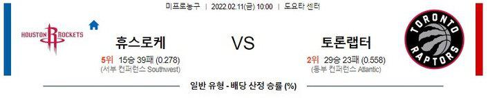【NBA】 2월 11일 휴스턴 로케츠 vs토론토 랩터스