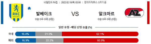 【네델란드 FA컵】 2월10일 RKC 발베이크 vs AZ 알크마르