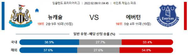 【프리미어리그】 2월 9일 뉴캐슬 유나이티드 vs 에버튼 FC