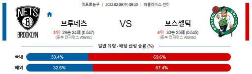 2월 9일 09:30 NBA분석 브루클린 : 보스턴