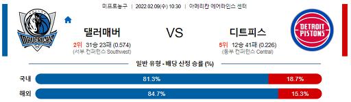 2월 9일 10:30 NBA분석 댈러스 : 디트로이트