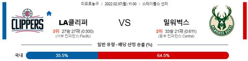 2월 7일 11:00 NBA분석 LA클리퍼스 : 밀워키
