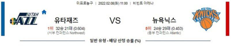 [NBA] 2월 8일 유타 재즈 vs 뉴욕 닉스유타는 직전경기(2/5) 홈에서 브루클린 상대로 125-102 승리를 기록했으며 이전경기(2/3) 홈에서 덴버 상대로 108-104 승리를 기록했다. 2연승 흐름 속에 시즌 32승20패 성적. 브루클린 상대로는 루디 고베어의 결장이 이어졌지만 도노반 미첼(27득점,6어시스트)가 부상에서 돌아오는 호재가 있었고 도노반 미첼과 마이크 콘리(14득점)가 승부처에 상대 코트를 휘젓고 다녔던 경기. 보그다노비치(19득점)의 외곽포가 터졌으며 하산 화이트사이드(15득점, 8리바운드), 루이스 오닐(6득점)이 골밑을 사수했던 상황. 또한, 승부처에 수비에서 높은 에너지를 보여줬고 가비지 타임이 동반 된 완승을 기록한 승리의 내용.