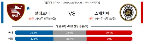 열람중 【세리에A】 2월 8일 US 살레르니타나 vs 스페치아 칼초 2022.02.08 525