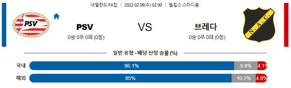 【네델란드 FA컵】 2월9일 PSV 에인트호번(아인트호벤) vs NAC 브레다● PSV (리그 2위 / 승승승패패)