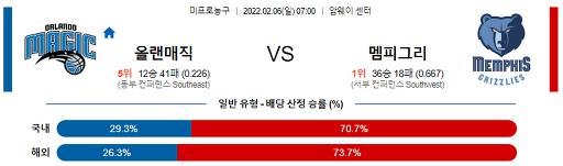 2월 6일 07:00 NBA분석 올랜도 : 멤피스