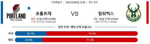 2월 6일 12:00 NBA분석 포틀랜드 : 밀워키