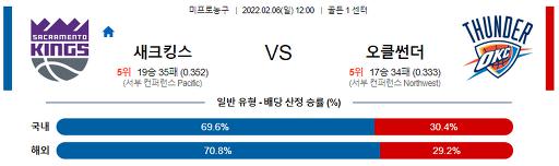 2월 6일 12:00 NBA분석 새크라멘토 : 오클라호마시티