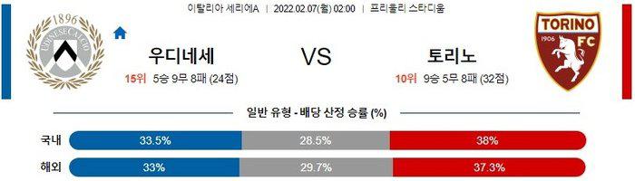 【세리에A】 2월 7일 우디네세 vs 토리노 FC