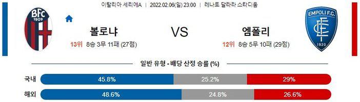 【세리에A】 2월 6일 볼로냐 FC vs 엠폴리 FC