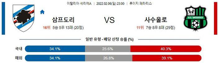 열람중 【세리에A】 2월 6일 삼프도리아 vs US 사수올로 2022.02.05 478