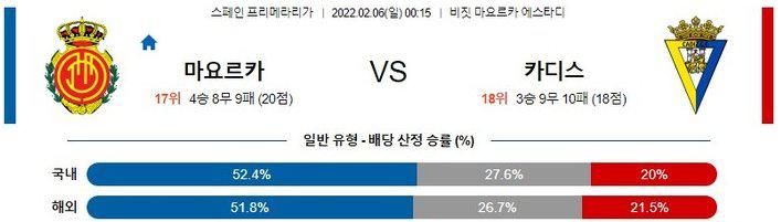 【Laliga】 2월 6일 마요르카 vs 카디스 CF