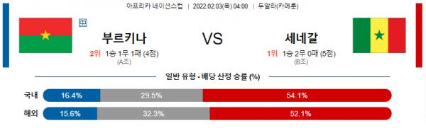 세네갈의 근소한 승리를 예상한다. 세네갈이 어쨌든 다득점에 대한 힌트를 얻었다는 점에서 세네갈이 우세한 흐름으로 진행될 것이 유력하다. 다만 다득점에 상대 실수가 큰 역할을 했다는 사실은 부정할 수 없다. 수비에는 출혈이 없는 부르키나파소가 대량 실점을 할 가능성은 적다. 따라서 스코어는 언더(2.5)가 유력하다. 저득점 양상의 경기가 예상되며 세네갈이 '진땀 승'을 거둘것이다. 핸디(+1.0)를 적용하면 무승부 가능성이 높다.