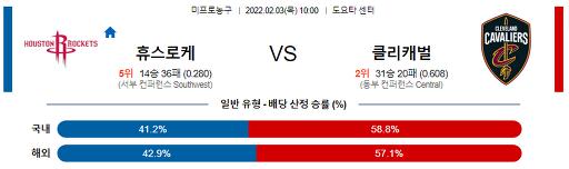 열람중 2월 3일 10:00 NBA분석 휴스턴 : 클리블랜드 2022.02.02 548