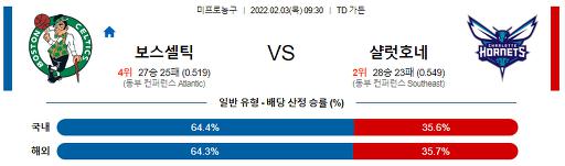 2월 3일 09:30 NBA분석 보스턴 : 샬럿