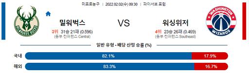 2월 2일 09:30 NBA분석 밀워키 : 워싱턴