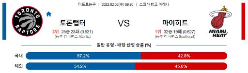 2월 2일 09:30 NBA분석 토론토 : 마이애미