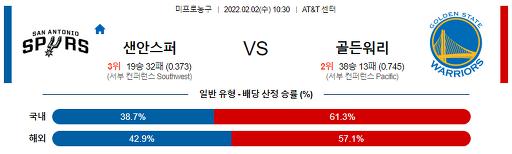 2월 2일 10:30 NBA분석 샌안토니오 : 골든스테이트