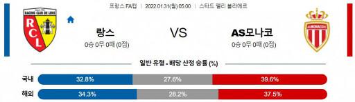 프랑스 리그컵 1월 31일 05:00 RC 랑스 : AS 모나코
