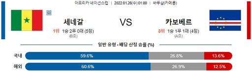 아프리카 네이션스컵 1월 26일 01:00 세네갈 : 카보베르데