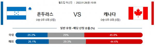 캐나다가 투톱의 파괴력으로 온두라스를 제압할 것이다. 객관적인 전력과 수비진의 퀄리티로 보면 캐나다가 우위이기도 하다. 그러나 캐나다가 원정 성적 부진을 완전히 씻었다고 보기는 힘들다. 원정에서 득점력이 확연히 줄어드는 경향이 있으므로, 캐나다도 다득점을 기록하며 승리를 거두지는 못할 것이다. 따라서 핸디(+1.0)를 걸면 무승부 가능성이 높다. 온두라스 역시 수세적 경기가 예상되어 다득점 가능성은 현저히 떨어진다. 캐니다 승 / 언더(2.5) / 핸디 무승부가 나올 것이다.