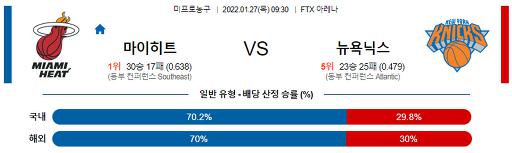 1월 27일 09:30 NBA분석 마이애미 : 뉴욕