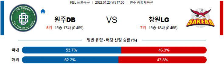 [KBL] 1월 23일 원주 DB vs 창원 LG