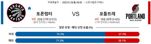 1월 24일 08:00 NBA분석 토론토 : 포틀랜드