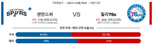 1월 24일 09:00 NBA분석 샌안토니오 : 필라델피아