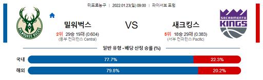 1월 23일 NBA분석 밀워키 : 새크라멘토