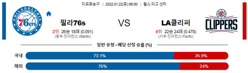 1월 22일 09:00 NBA분석 필라델피아 : LA클리퍼스