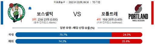 1월 22일 09:30 NBA분석 보스턴 : 포틀랜드