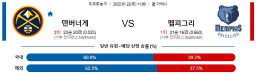 1월 22일 11:00 NBA분석 덴버 : 멤피스