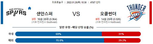 1월 20일 10:30 NBA분석 샌안토니오 : 오클라호마시티