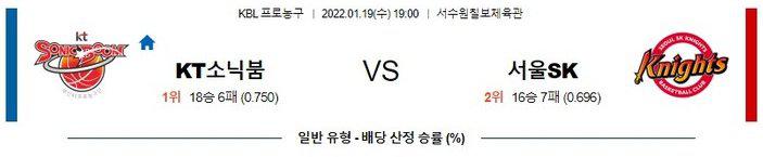 [KBL] 1월 19일 KT 소닉붐 vs 서울 SK