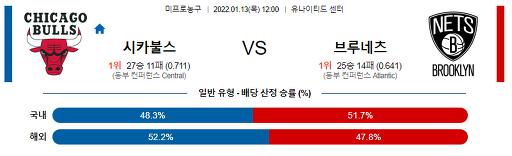 연속경기 일정이다. 시카고는 직전경기(1/12) 홈에서 디트로이트 상대로 133-87 승리를 기록했으며 이전경기(1/10) 원정에서 댈러스 상대로 99-113 패배를 기록했다. 시즌 26승11패 성적. 디트로이트 상대로는 돈치치와 매치업에서 완패를 당했던 론조 볼(18득점, 5어시스트)이 정상 컨디션을 회복했고 7개 3점슛을 57%의 적중률 속에 림에 꽂아 넣었던 경기. 더마 드로잔(20득점, 7어시스트)과 함께 잭 라빈(10득점), 니콜라 부세비치(22득점, 8리바운드), 코비 화이트(13득점, 3점슛 1개)의 시너지 효과가 나타나면서 전체적인 팀 에너지도 올라갈수 있었던 상황. 또한, 세컨 유닛들의 역할 분담도 좋았고 속공 상황에서 높은 마무리 능력을 보여준 승리의 내용.