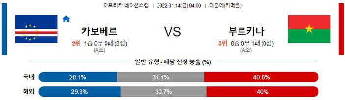 【아프리카 네이션스컵】 1월 14일 카보베르데 vs 부르키나파소