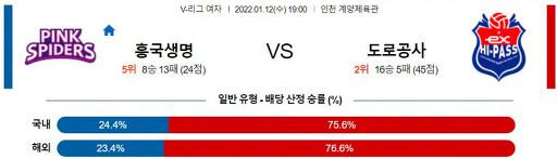 1월 12일 19:00 V-리그 여자 흥국생명 : 한국도로공사