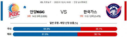 1월 12일 19:00 안양 KGC : 한국가스공사