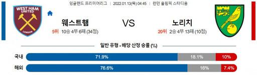 프리미어리그 1월 13일 04:45 웨스트햄 : 노리치 시티 FC