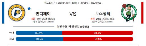 열람중 1월 13일 NBA분석 인디애나 : 보스턴 2022.01.12 604