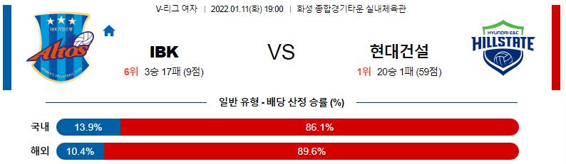 [KOVO 여자배구] 1월 11일 화성 IBK기업은행 VS 수원 현대건설