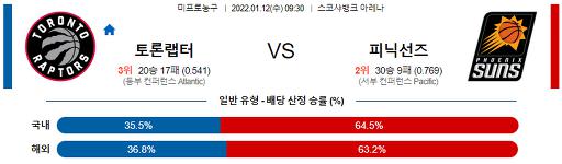 1월 12일 09:30 NBA분석 토론토 : 피닉스