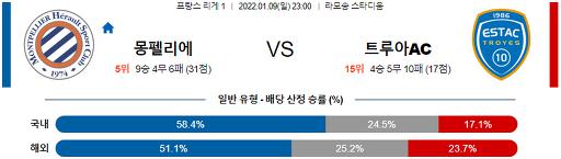 리그앙 1월 9일 23:00 몽펠리에 HSC : 트루아 AC
