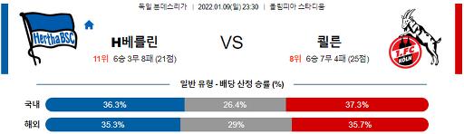 분데스리가 1월 9일 23:30 헤르타 베를린 : FC 쾰른