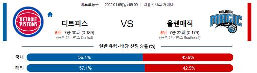 1월 9일 NBA분석 디트로이트 : 올랜도
