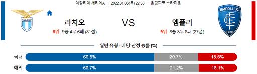 세리에A 1월 6일 22:30 SS 라치오 : 엠폴리